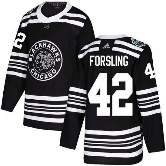 >Youth Adidas Chicago Blackhawks #42 Gustav Forsling Authentic Black 2019 Winter Classic NHL Jersey
