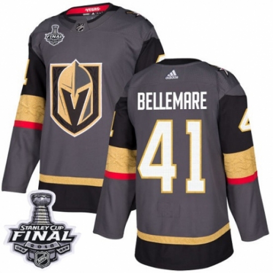 Youth Adidas Vegas Golden Knights #41 Pierre-Edouard Bellemare Authentic Gray Home 2018 Stanley Cup Final NHL Jersey