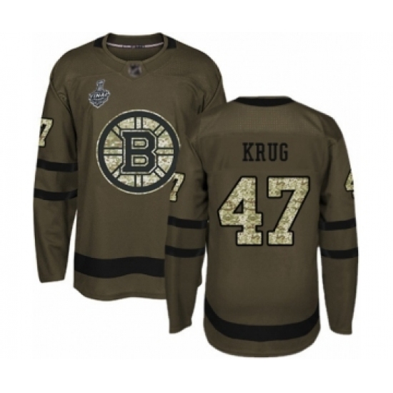 Youth Boston Bruins #47 Torey Krug Authentic Green Salute to Service 2019 Stanley Cup Final Bound Hockey Jersey