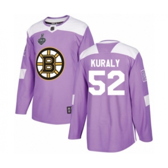 Youth Boston Bruins #52 Sean Kuraly Authentic Purple Fights Cancer Practice 2019 Stanley Cup Final Bound Hockey Jersey