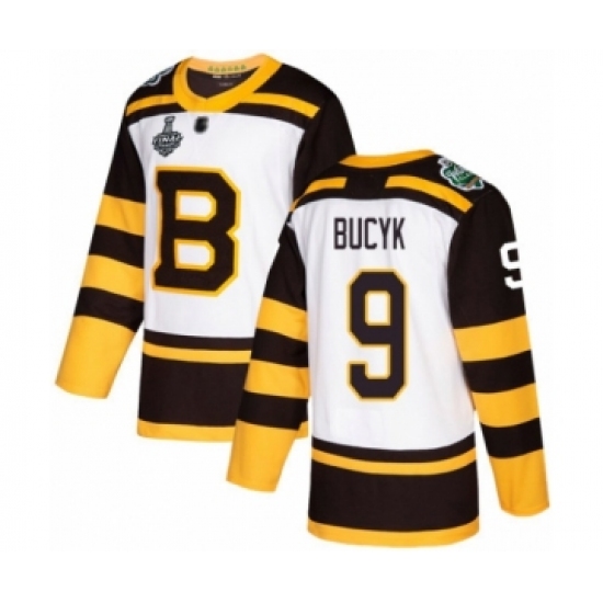 >Youth Boston Bruins #9 Johnny Bucyk Authentic White Winter Classic 2019 Stanley Cup Final Bound Hockey Jersey