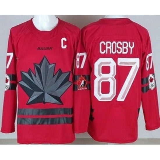 Men's Canada Hockey #87 Sidney Crosby With C Red 2026 Olympics Stitched Jersey