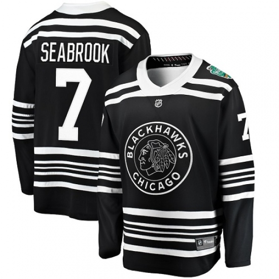 >Youth Chicago Blackhawks #7 Brent Seabrook Black 2019 Winter Classic Fanatics Branded Breakaway NHL Jersey