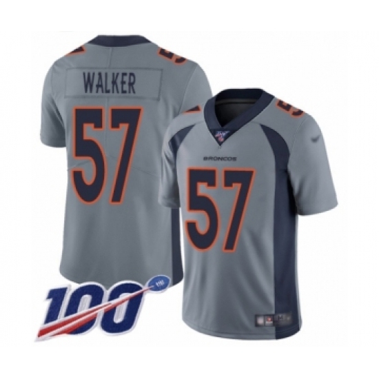 >Youth Denver Broncos #57 Demarcus Walker Limited Silver Inverted Legend 100th Season Football Jersey