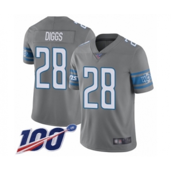 >Youth Detroit Lions #28 Quandre Diggs Limited Steel Rush Vapor Untouchable 100th Season Football Jersey