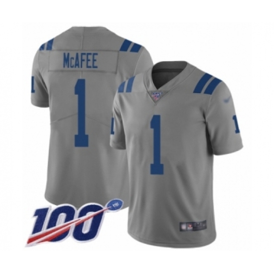 >Youth Indianapolis Colts #1 Pat McAfee Limited Gray Inverted Legend 100th Season Football Jersey