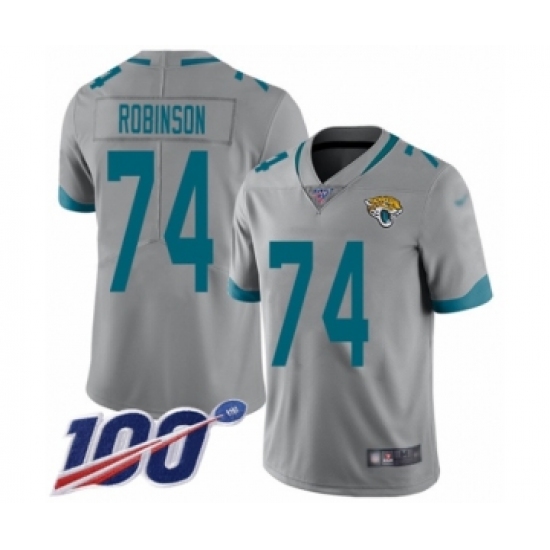 >Youth Jacksonville Jaguars #74 Cam Robinson Silver Inverted Legend Limited 100th Season Football Jersey