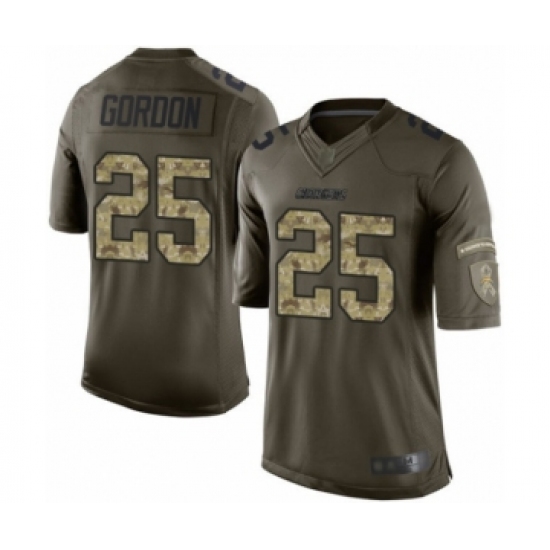 >Youth Los Angeles Chargers #25 Melvin Gordon Elite Green Salute to Service Football Jersey
