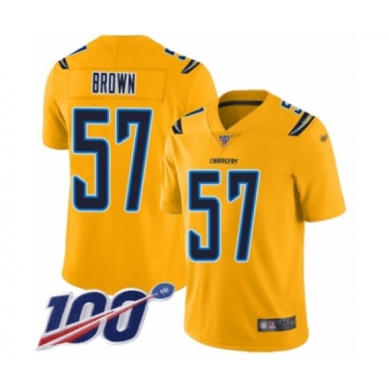 >Youth Los Angeles Chargers #57 Jatavis Brown Limited Gold Inverted Legend 100th Season Football Jersey