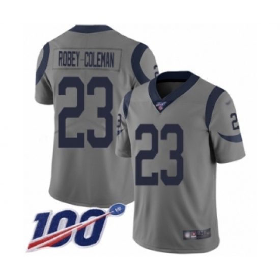 >Youth Los Angeles Rams #23 Nickell Robey-Coleman Limited Gray Inverted Legend 100th Season Football Jersey