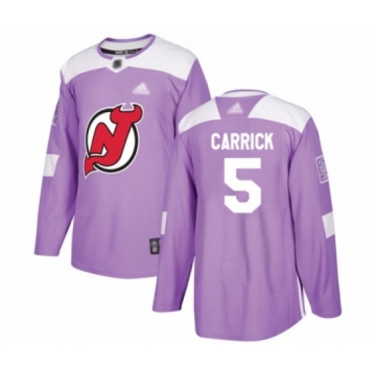 >Youth New Jersey Devils #5 Connor Carrick Authentic Purple Fights Cancer Practice Hockey Jersey