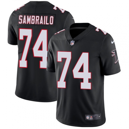Home>NFL>Atlanta Falcons>Ty Sambrailo>Youth Nike Atlanta Falcons #74 Ty Sambrailo Black Alternate Vapor Untouchable Limited Player NFL Jersey