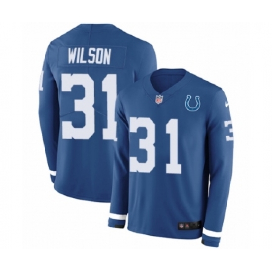 >Youth Nike Indianapolis Colts #31 Quincy Wilson Limited Blue Therma Long Sleeve NFL Jersey