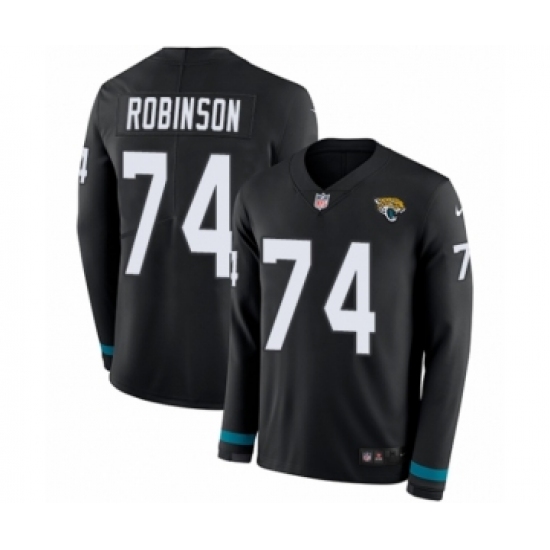 >Youth Nike Jacksonville Jaguars #74 Cam Robinson Limited Black Therma Long Sleeve NFL Jersey