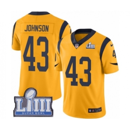 Youth Nike Los Angeles Rams #43 John Johnson Limited Gold Rush Vapor Untouchable Super Bowl LIII Bound NFL Jersey