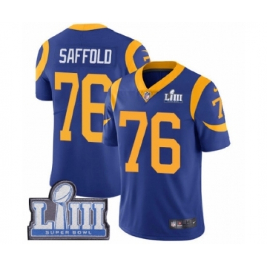 Youth Nike Los Angeles Rams #76 Rodger Saffold Royal Blue Alternate Vapor Untouchable Limited Player Super Bowl LIII Bound NFL Jersey