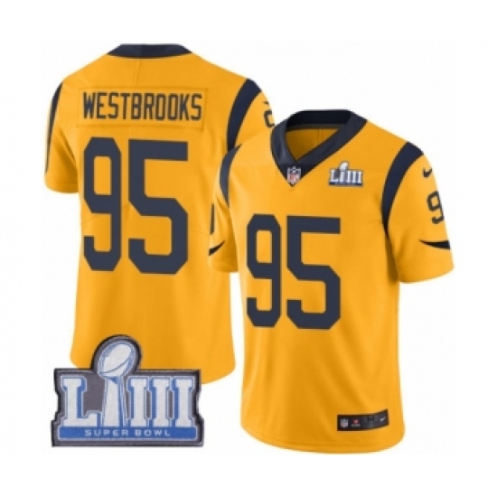 >Youth Nike Los Angeles Rams #95 Ethan Westbrooks Limited Gold Rush Vapor Untouchable Super Bowl LIII Bound NFL Jersey