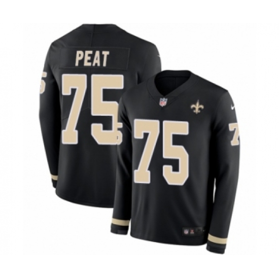 >Youth Nike New Orleans Saints #75 Andrus Peat Limited Black Therma Long Sleeve NFL Jersey