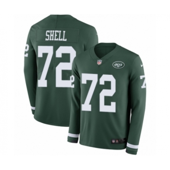 >Youth Nike New York Jets #72 Brandon Shell Limited Green Therma Long Sleeve NFL Jersey