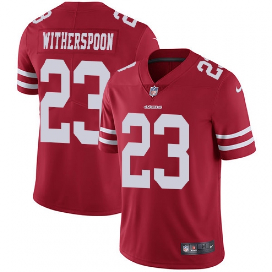Home>NFL>San Francisco 49ers>Ahkello Witherspoon>Youth Nike San Francisco 49ers #23 Ahkello Witherspoon Red Team Color Vapor Untouchable Limited Player NFL Jersey