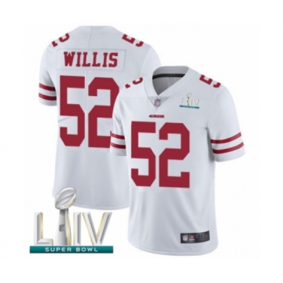 >Youth San Francisco 49ers #52 Patrick Willis White Vapor Untouchable Limited Player Super Bowl LIV Bound Football Jersey