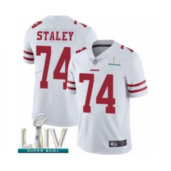 >Youth San Francisco 49ers #74 Joe Staley White Vapor Untouchable Limited Player Super Bowl LIV Bound Football Jersey