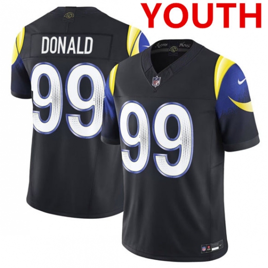 Youth los angeles rams #99 aaron donald midnight blue 2025 f.u.s.e. “rivalries” vapor limited football stitched jersey