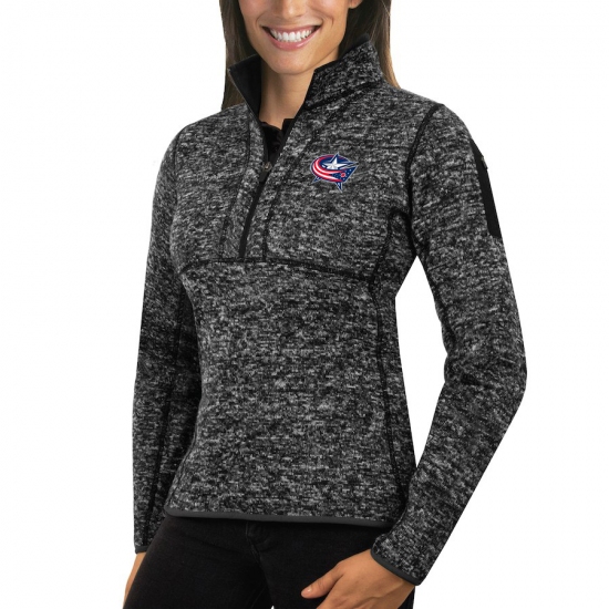 >Columbus Blue Jackets Antigua Women's Fortune Zip Pullover Sweater Charcoal