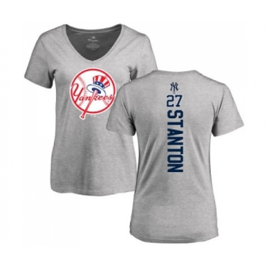 MLB Women's Nike New York Yankees #27 Giancarlo Stanton Ash Backer T-Shirt