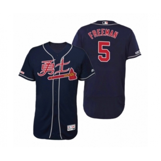 Men's 2019 Asian Heritage Month Atlanta Braves #5 Freddie Freeman Navy Chinese Flex Base Jersey