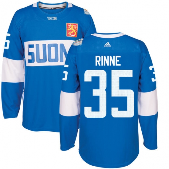 Men's Adidas Team Finland #35 Pekka Rinne Premier Blue Away 2016 World Cup of Hockey Jersey