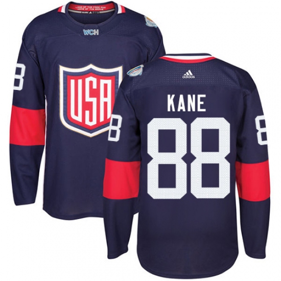 Men's Adidas Team USA #88 Patrick Kane Authentic Navy Blue Away 2016 World Cup Ice Hockey Jersey