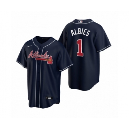 Men's Atlanta Braves #1 Ozzie Albies Nike Navy 2020 Replica Alternate Jersey