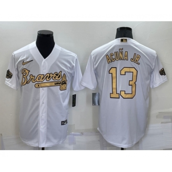 Men's Atlanta Braves #13 Ronald Acuna Jr Number White 2022 All Star Stitched Cool Base Nike Jersey