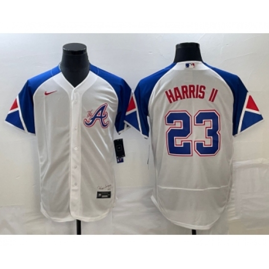 Men's Atlanta Braves #23 Michael Harris II Number White 2023 City Connect Flex Base Stitched Baseball Jersey1