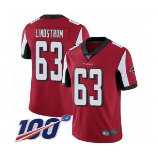 Men's Atlanta Falcons #63 Chris Lindstrom Red Team Color Vapor Untouchable Limited Player 100th Season Football Jersey