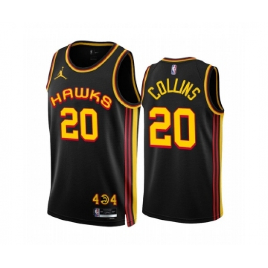 >Men's Atlanta Hawks #20 John Collins 2022-23 Black Statement Edition Stitched Jersey
