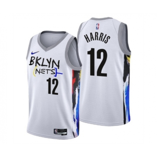 >Men's Brooklyn Nets #12 Joe Harris 2022-23 White City Edition Stitched Basketball Jersey