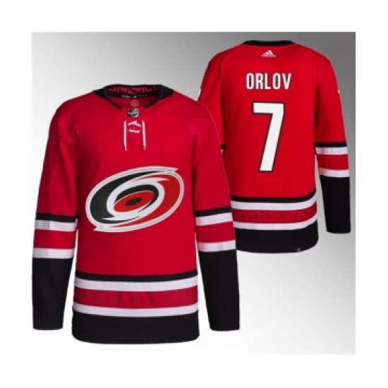 >Men's Carolina Hurricanes #7 Dmitry Orlov Red Stitched Jersey