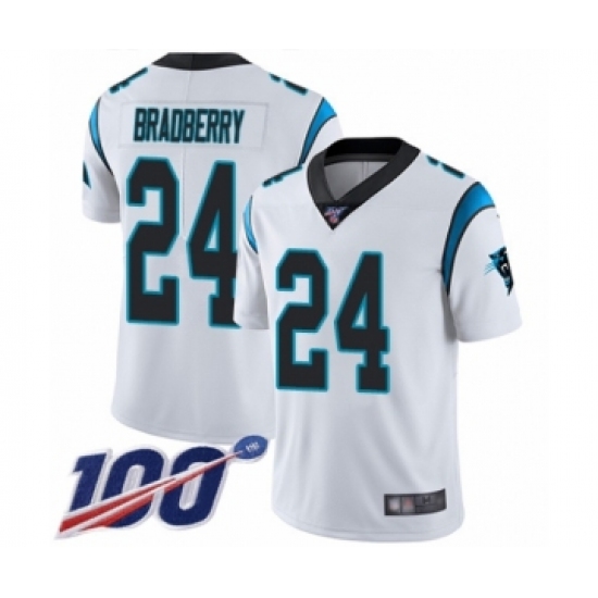 Men's Carolina Panthers #24 James Bradberry White Vapor Untouchable Limited Player 100th Season Football Jersey