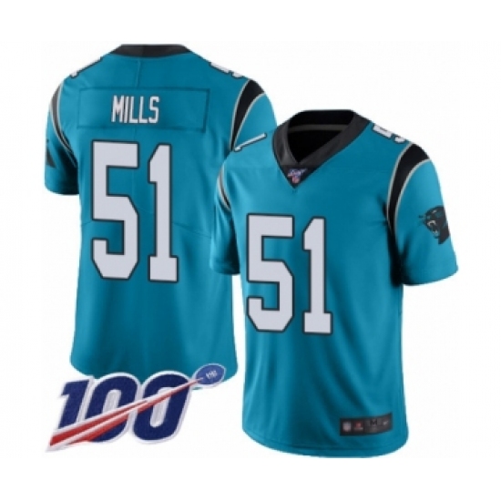 Men's Carolina Panthers #51 Sam Mills Limited Blue Rush Vapor Untouchable 100th Season Football Jersey