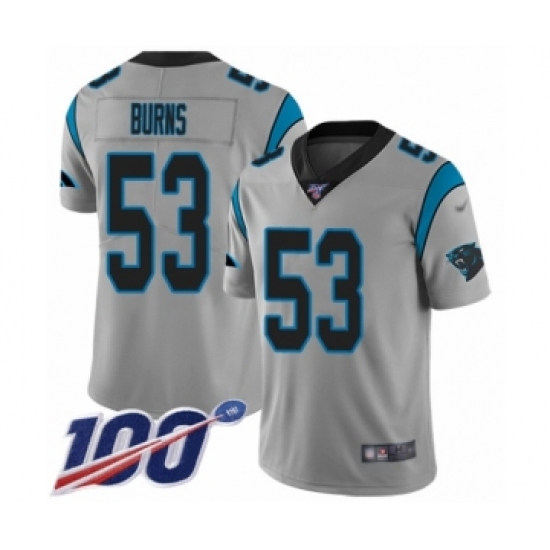 Men's Carolina Panthers #54 Shaq Thompson Silver Inverted Legend Limited 100th Season Football Jersey