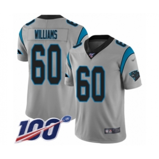 Men's Carolina Panthers #60 Daryl Williams Silver Inverted Legend Limited 100th Season Football Jersey
