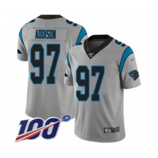 Men's Carolina Panthers #97 Mario Addison Silver Inverted Legend Limited 100th Season Football Jersey