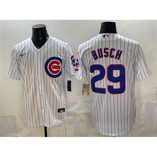>Men's Chicago Cubs #29 Michael Busch White Cool Base Stitched Baseball Jersey