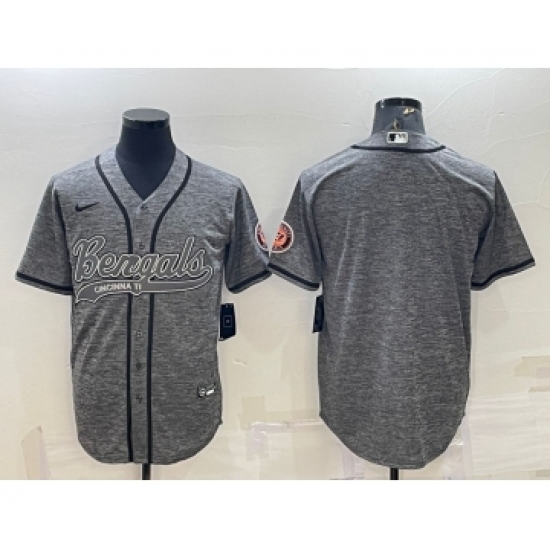 Men's Cincinnati Bengals Blank Grey Gridiron Cool Base Stitched Baseball Jersey