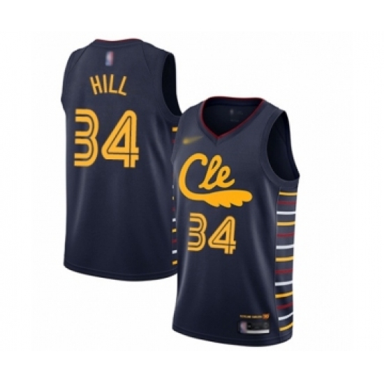 >Men's Cleveland Cavaliers #34 Tyrone Hill Swingman Navy Basketball Jersey - 2019 20 City Edition