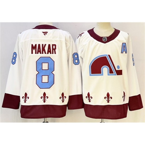 >Men's Colorado Avalanche #8 Cale Makar White 2024-25 With A Stitched Jersey