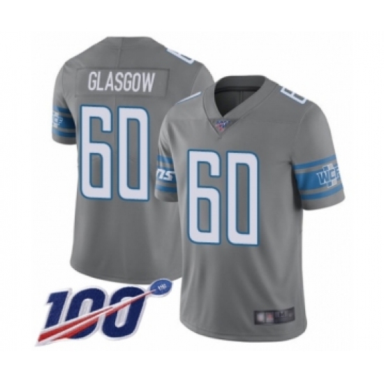 >Men's Detroit Lions #60 Graham Glasgow Limited Steel Rush Vapor Untouchable 100th Season Football Jersey