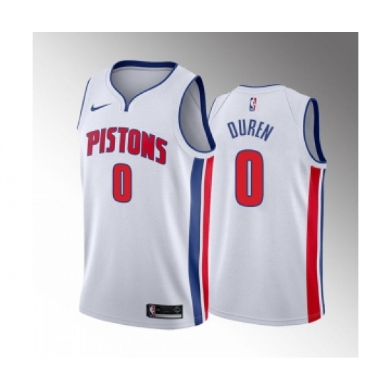 >Men's Detroit Pistons #0 Jalen Duren 2022 Draft White Basketball Stitched Jersey